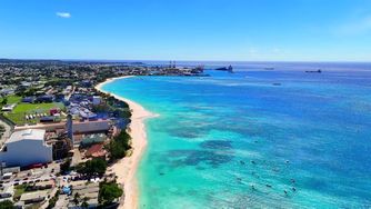 Gliding south along the coastline, we’re treated to a stunning palette of blues, from the multi-shaded waters below to the brilliant azure sky above on this typically gorgeous Barbados day.